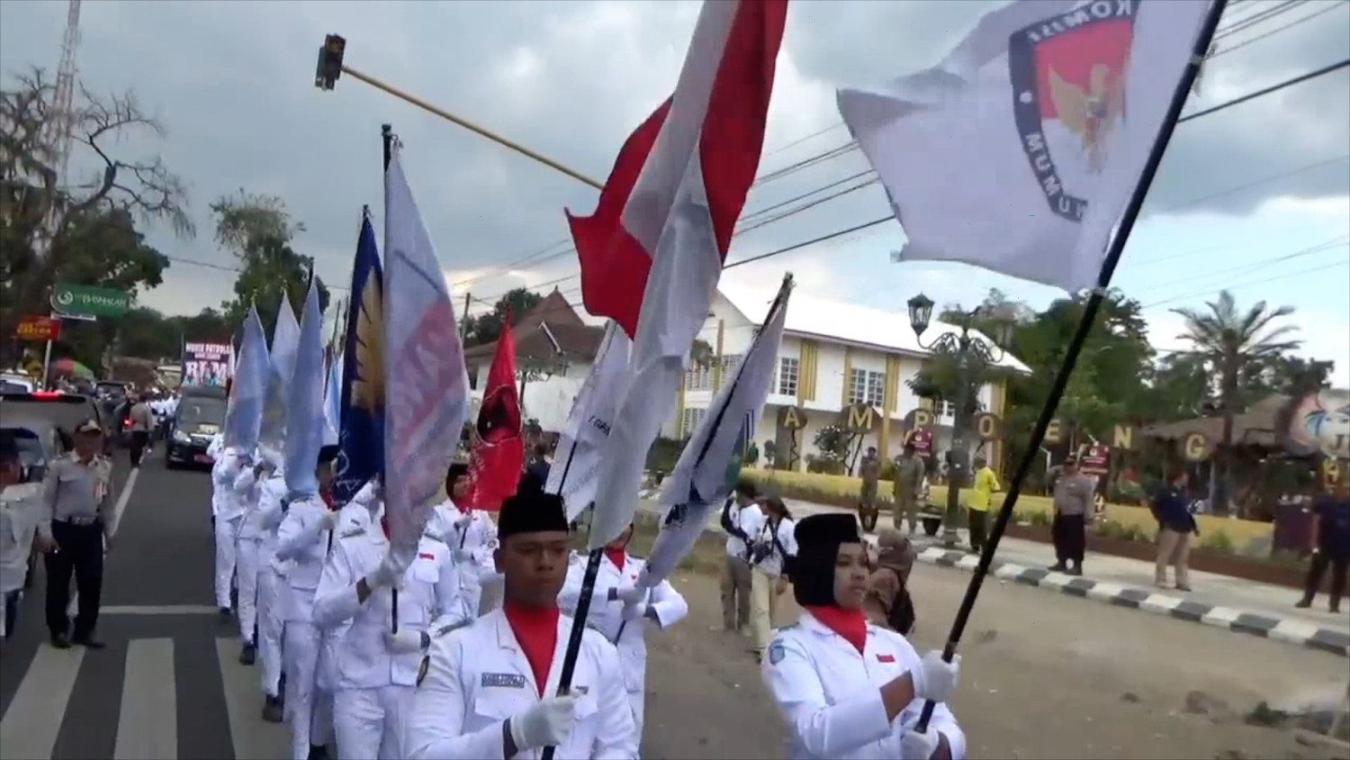 ANTARA - KPU Kabupaten Jember, Jawa Timur menerima kirab bendera Pemilu 2024 di ruang terbuka hijau Kecamatan Arjasa, Jember. Sabtu (23/09). Kirab ini merupakan upaya KPU dalam mensosialisasikan penyelenggaraan Pemilu 2024. (Hamka Agung Balya/Yovita Amalia/I Gusti Agung Ayu N)