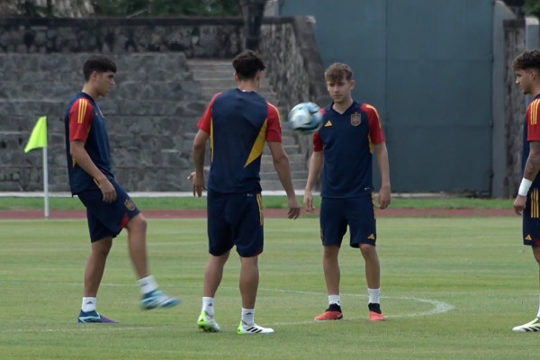 ANTARA - Timnas sepak bola Spanyol U-17 menggelar latihan jelang laga melawan Jepang pada 16 besar Piala Dunia U-17. Pertandingan antara Spanyol melawan Jepang akan digelar di Stadion Manahan, Solo, Jawa Tengah, Senin (20/11).(Yogi Rachman/Satrio Giri Marwanto/I Gusti Agung Ayu N)