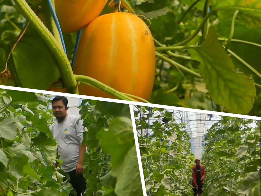 ANTARA - Seorang petani milenial asal Temanggung, Jawa Tengah Hendi Nur Seto mengembangkan konsep hidroponik rumah kaca (green house) untuk budidaya buah melon. Dalam satu bulan, Hendi mampu menjual 2,5 - 3 ton buah melon dengan omzet mencapai Rp75 juta. (Firman Eko Handy/Rizky Bagus Dhermawan/Hilary Pasulu)