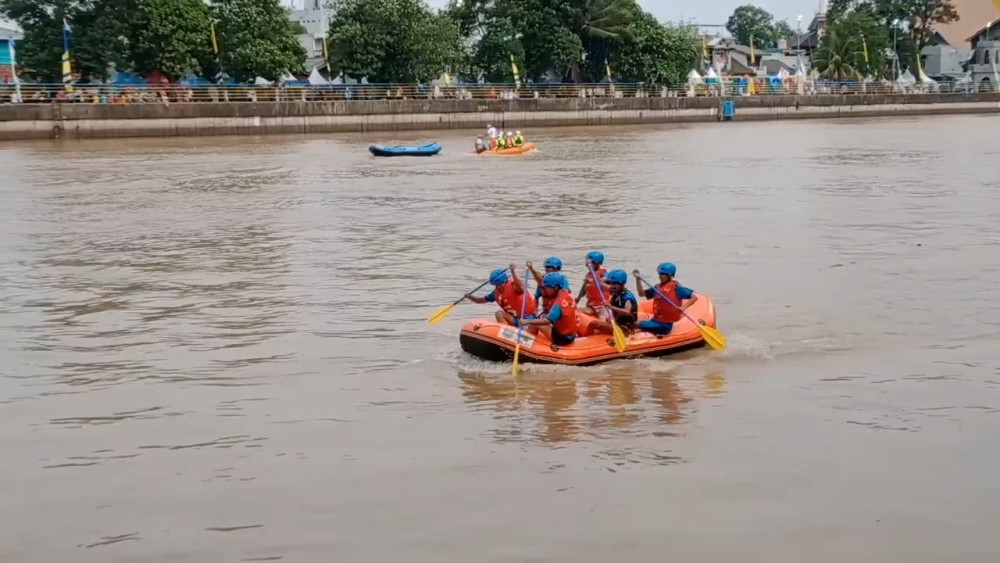ANTARA - Kejuaraan Daerah (Kejurda) cabang olahraga arung jeram memperebutkan piala Wali Kota Tangerang tahun 2023 resmi dibuka, di Taman Dayung, Kota Tangerang, Rabu (22/11). Kompetisi ini menjadi yang pertama diadakan serangkaian dalam kegiatan Festival Cisadane tahun ini. (Agung Andhika Indrawan/Soni Namura/I Gusti Agung Ayu N)