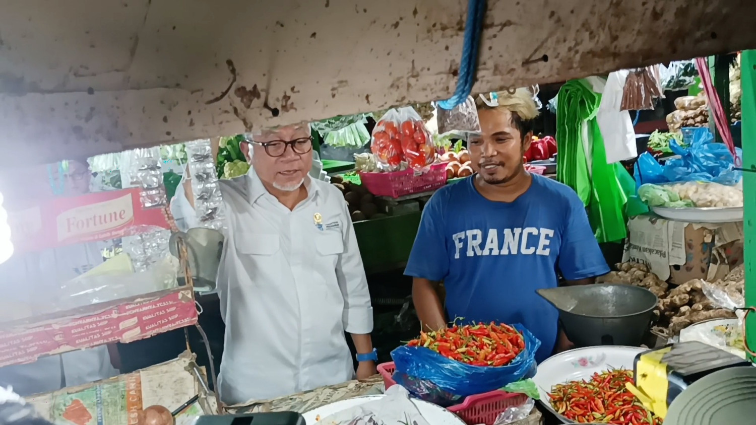 ANTARA - Saat meninjau pasar di Surabaya, Senin (4/12), Menteri Perdagangan Zulkifli Hasan memberikan respons atas kenaikan harga cabai rawit yang tidak terkendali. Mendag Zulhas meminta Perintah Daerah untuk membantu tercapainya stabilitas harga bahan kebutuhan pokok, menjelang datangnya Natal dan Tahun Baru. (Hanif Nasrullah/Yovita Amalia/Rinto A Navis)
