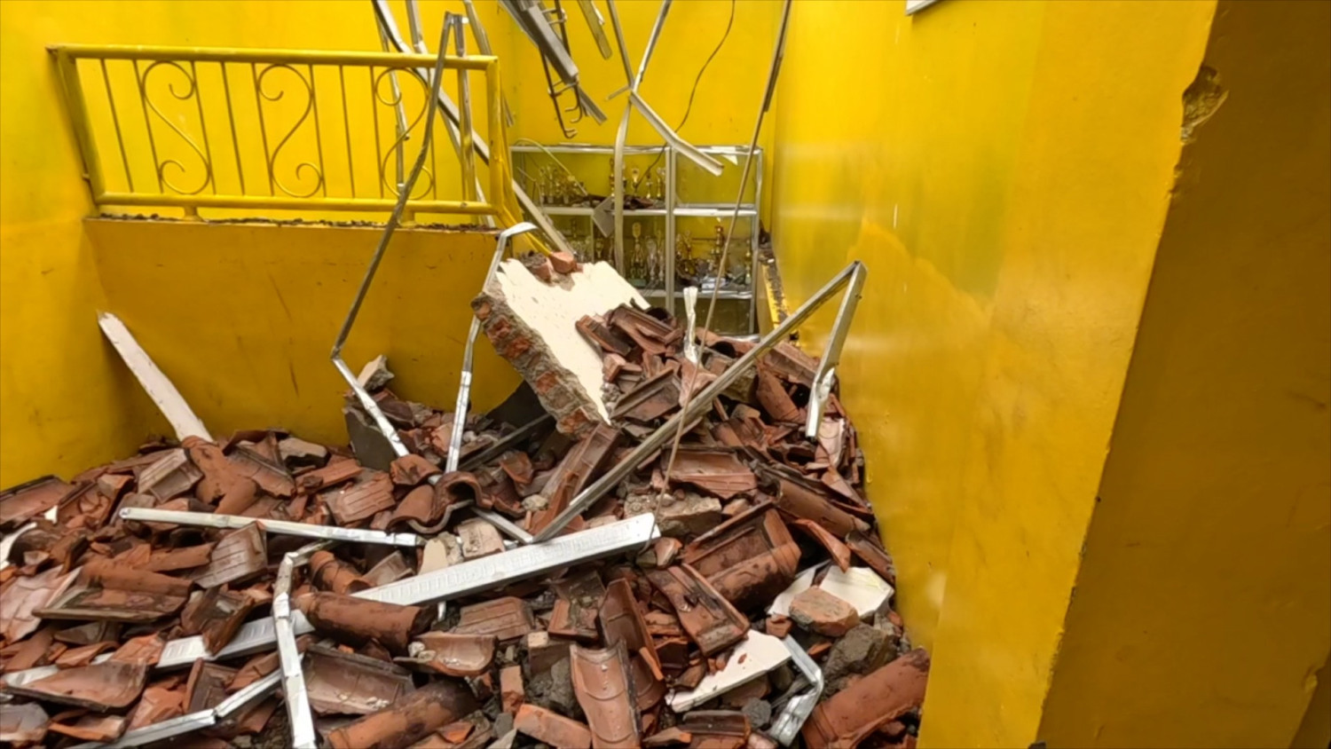 ANTARA - Empat atap ruang kelas di SDN Polisi 1, Kelurahan Paledang, Kota Bogor, Jawa Barat ambruk pada, Rabu (3/1), kejadian ini terjadi sekitar pukul 05.30 WIB. Kepala Pelaksana Badan Penanggulangan Bencana Daerah (BPBD) Kota Bogor Hidayatulloh mengatakan atap sekolah yang ambruk akibat hujan deras serta angin kencang, dan telah menyebabkan kerugian mencapai Rp300 juta. (Fadzar Ilham Pangestu/Denno Ramdha Asmara/Farah Khadija)