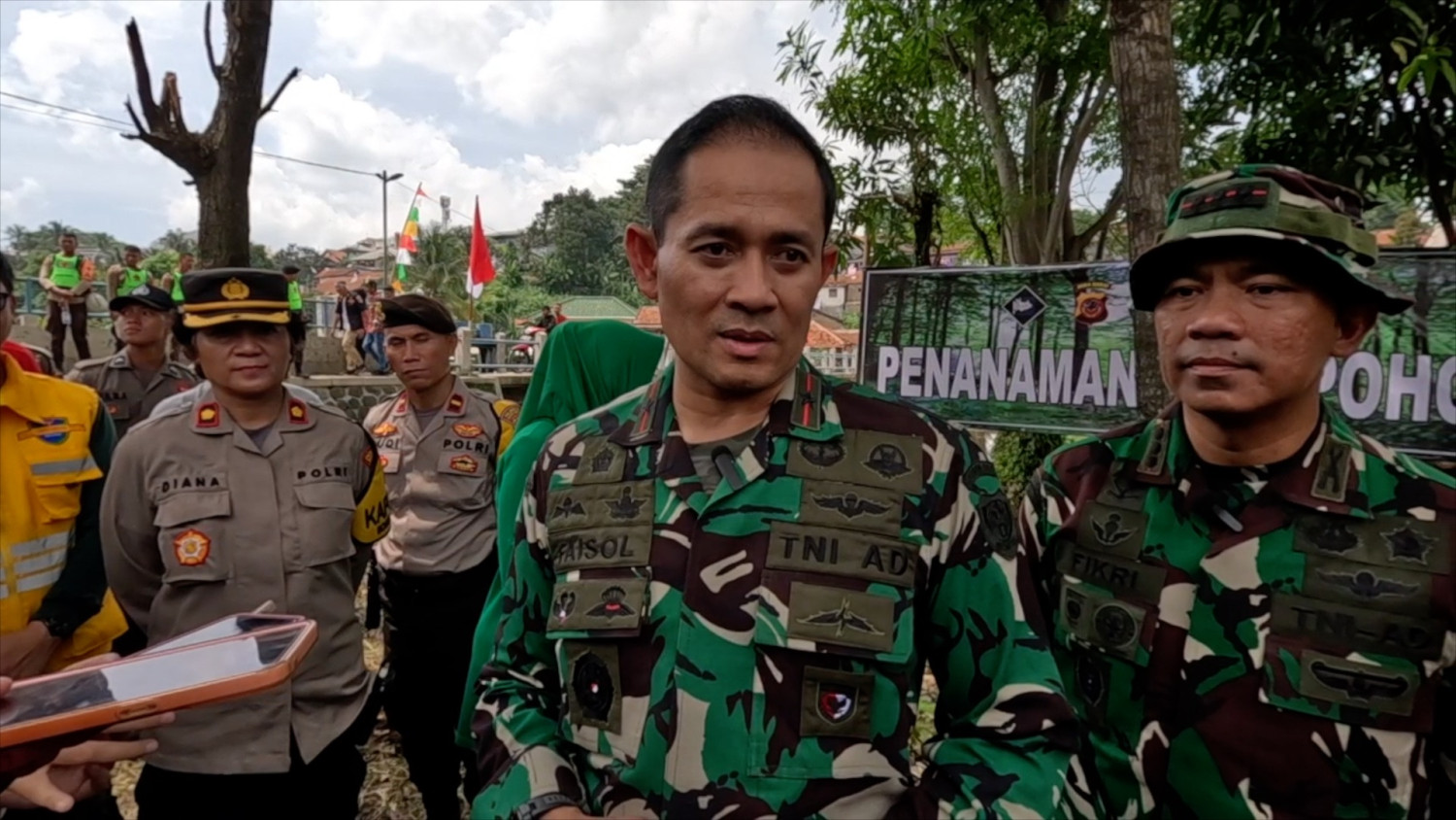 ANTARA - Komando Resor Militer 061/Surya Kencana, Polresta Bogor Kota dan Pemkot Kota Bogor menggelar bebenah Sungai Cisadane di Bendung Empang, Kelurahan Empang, Kecamatan Bogor Selatan, Minggu (14/1) sebagai bentuk "perang" melawan sampah. Kegiatan ini diikuti oleh 600 personel gabungan TNI, Polri dan Pemkot Bogor yang bersama-sama membersihkan sungai dan menanam seribu pohon. (Fadzar Ilham Pangestu/Andi Bagasela/Nanien Yuniar)