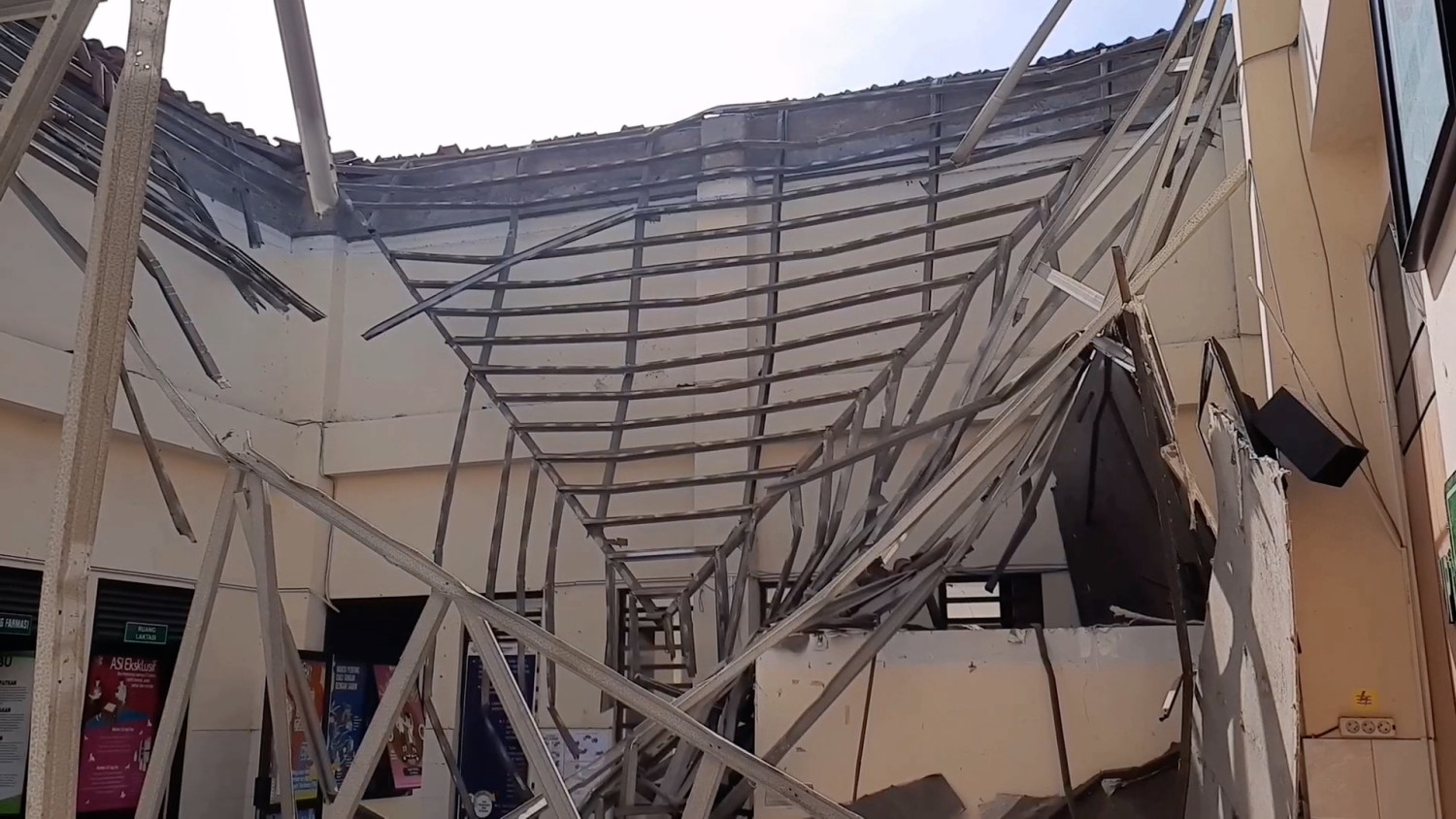 ANTARA - Atap bangunan unit layanan rawat jalan Puskesmas Jaten 1, Kabupaten Karanganyar, Jawa Tengah ambruk saat terjadi hujan deras, Rabu (6/3) dini hari. Tidak ada korban jiwa dalam peristiwa itu, namun membuat pelayanan menjadi terganggu. (Denik Apriyani/Denno Asmara/Nusantara Mulkan)