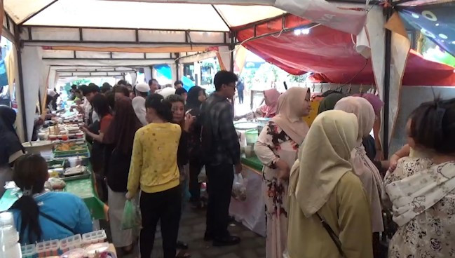 ANTARA - Pulau Dewata, Bali dikenal dengan mayoritas penduduknya yang beragama Hindu. Namun, bukan berarti di daerah yang dikenal dengan kunjungan turis asingnya yang melimpah itu tidak ada sama sekali masyarakat muslim. Nyatanya, di Kampung Jawa Dusun Wanasari, Denpasar Utara, terdapat pasar kuliner Ramadhan yang memudahkan masyarakat muslim untuk mendapatkan ragam menu kuliner hingga takjil. (Rita Laura/Rizky Bagus Dhermawan/Nabila Anisya Charisty)