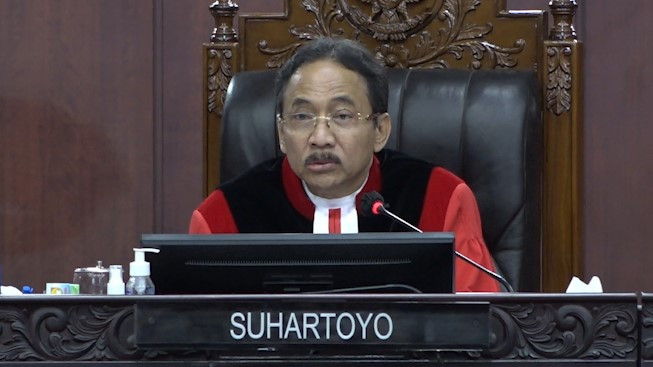 ANTARA - Mahkamah Konstitusi (MK) menyatakan menolak seluruh permohonan sengketa hasil Pemilihan Presiden (Pilpres) 2024 yang diajukan calon presiden dan wakil presiden nomor urut 1 Anies Baswedan-Muhaimin Iskandar. Putusan perkara Perselisihan Hasil Pemilihan Umum (PHPU) Pilpres 2024 tersebut dibacakan oleh Ketua MK Suhartoyo dalam sidang di Gedung MK, Jakarta, Senin (22/4). (Setyanka Harviana Putri/Yogi Rachman/Rizky Bagus Dhermawan/Gracia Simanjuntak)