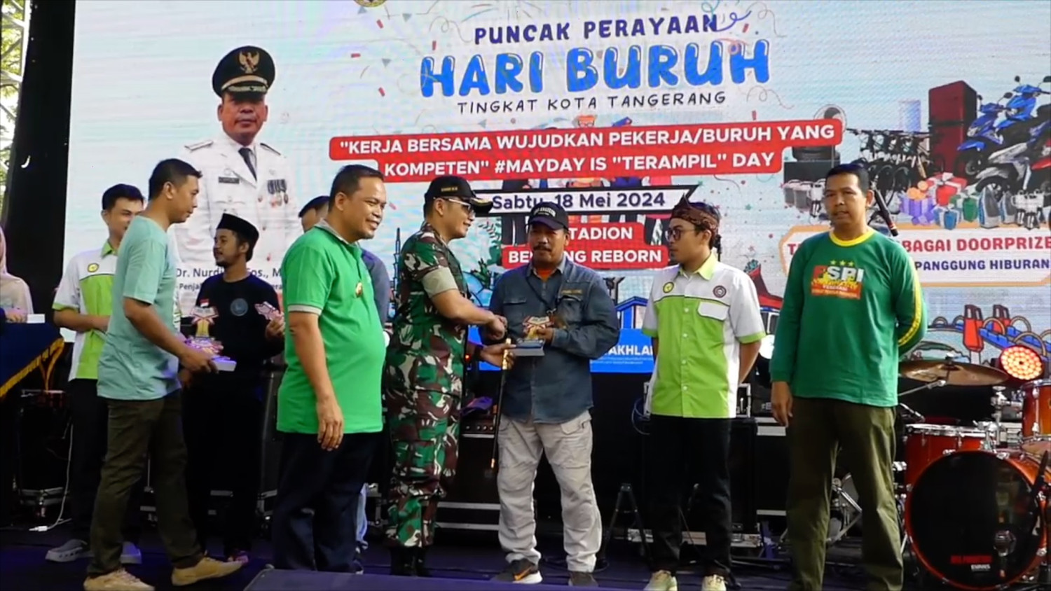 ANTARA - Pemerintah Kota Tangerang, Banten melalui Dinas Ketenagakerjaan menggelar puncak peringatan Hari Buruh Internasional tahun 2024, yakni dengan memberikan beragam layanan kesehatan kepada para buruh dan serikat pekerja se-Kota Tangerang di Stadion Benteng Reborn, Sabtu (18/5). Penjabat Wali Kota Tangerang Nurdin menyebut mensejahterakan para buruh sama saja dengan mensejahterakan masyarakat, mulai dari memberikan apresiasi, layanan kesehatan dan lainnya. (Agung Andhika Indrawan/Chairul Fajri/Farah Khadija)