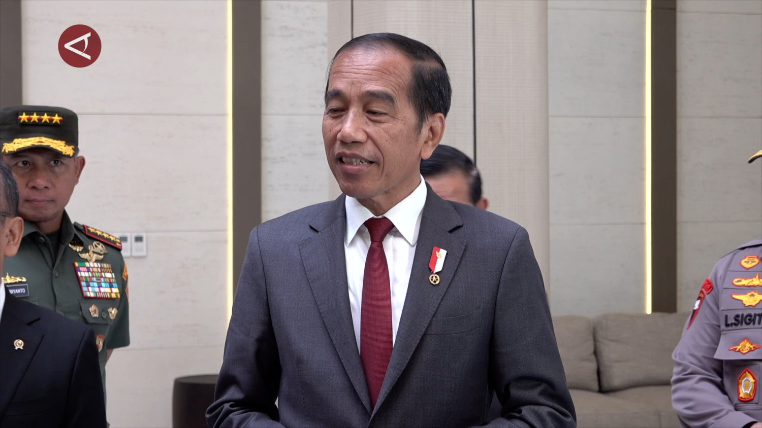 ANTARA - Presiden Joko Widodo menyampaikan tanggapannya terkait kemungkinan dirinya bergabung dalam Dewan Pertimbangan Agung (DPA) pada masa pemerintahan Prabowo Subianto mendatang. Respons singkat ia sampaikan saat dijumpai di Jakarta, Selasa (16/7). (Aria Cindyara/Yogi Rachman/Satrio Giri Marwanto/Gracia Simanjuntak)