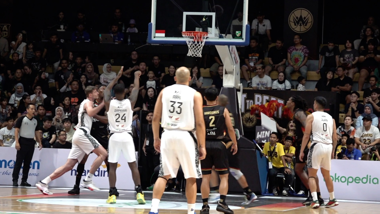 ANTARA - Satria Muda Pertamina Jakarta mengalahkan Dewa United Benten pada laga semifinal kedua di Dewa United Arena, Tangerang, Banten, Sabtu (27/7) dengan skot 92-85. Tim asuhan Youbel Sondakh akan berhadapan dengan Pelita Jaya yang menyingkirkan Prawira Harum Bandung dengan 90-77. (Muhammad Ramdan/Soni Namura/Feny Aprianti)