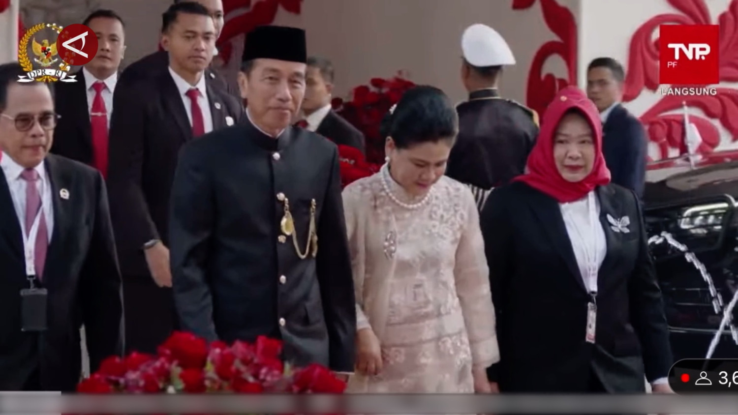 ANTARA - Presiden Joko Widodo, Ibu Negara Iriana, Wakil Presiden Ma’ruf Amin dan istri mengenakan pakaian adat saat menghadiri sidang tahunan MPR RI, Jumat (16/8). Kali ini, Presiden Jokowi mengenakan pakaian adat Betawi. Sementara itu, Wapres Ma'ruf Amin memakai pakaian adat Palembang. (Sanya Dinda Susanti/Rayyan/Rijalul Vikry)