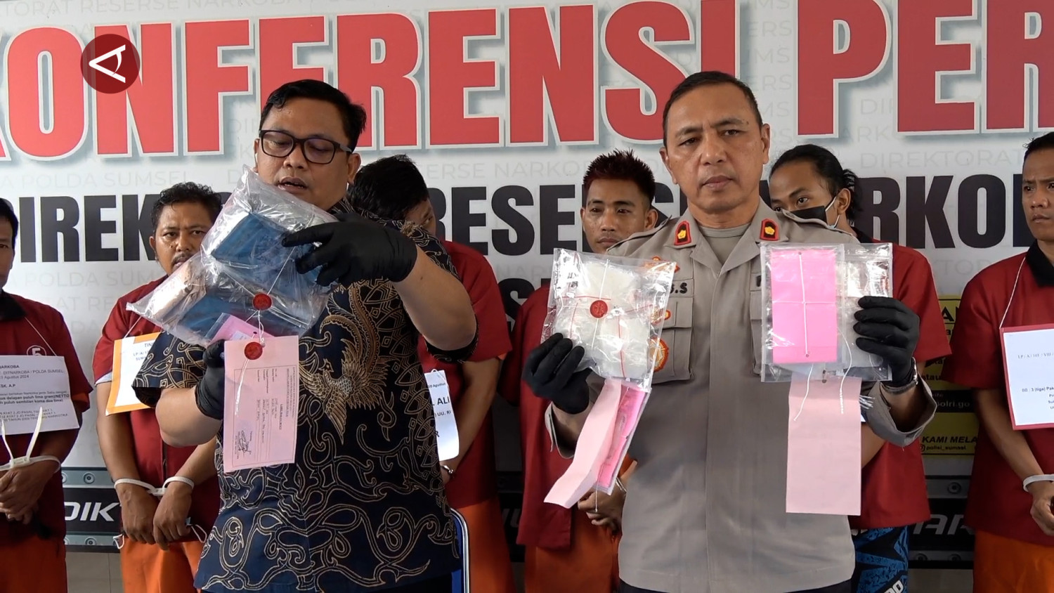 ANTARA - Direktorat Reserse Narkoba (Ditresnarkoba) Polda Sumatera Selatan menggagalkan transaksi narkoba jenis sabu sebanyak 3 kilogram dan pil ekstasi sebanyak 526 butir. Wakil Direktur Reserse Narkoba Polda Sumatera Selatan AKBP Haris Sandi pada Jumat (16/8) menyebut, beberapa barang haram yang didapat dari tempat kejadian perkara di Palembang berasal dari dalam lapas. (Winda Tri Agustina/Arif Prada/Rijalul Vikry)
