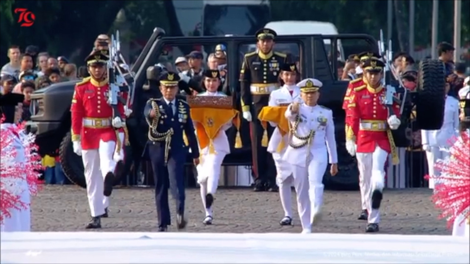 ANTARA - Kirab Bendera Pusaka Merah Putih dan Naskah Teks Proklamasi tiba di Monumen Nasional (Monas) Jakarta, Sabtu (31/8), sekitar pukul 16.15 WIB, setelah digunakan dalam rangkaian acara HUT ke-79 RI di Ibu Kota Negara (IKN) Nusantara, Kalimantan Timur. Kedatangannya diiringi oleh pasukan berkuda dan drumband. (Setyanka Harviana Putri/Chairul Fajri/Feny Aprianti)