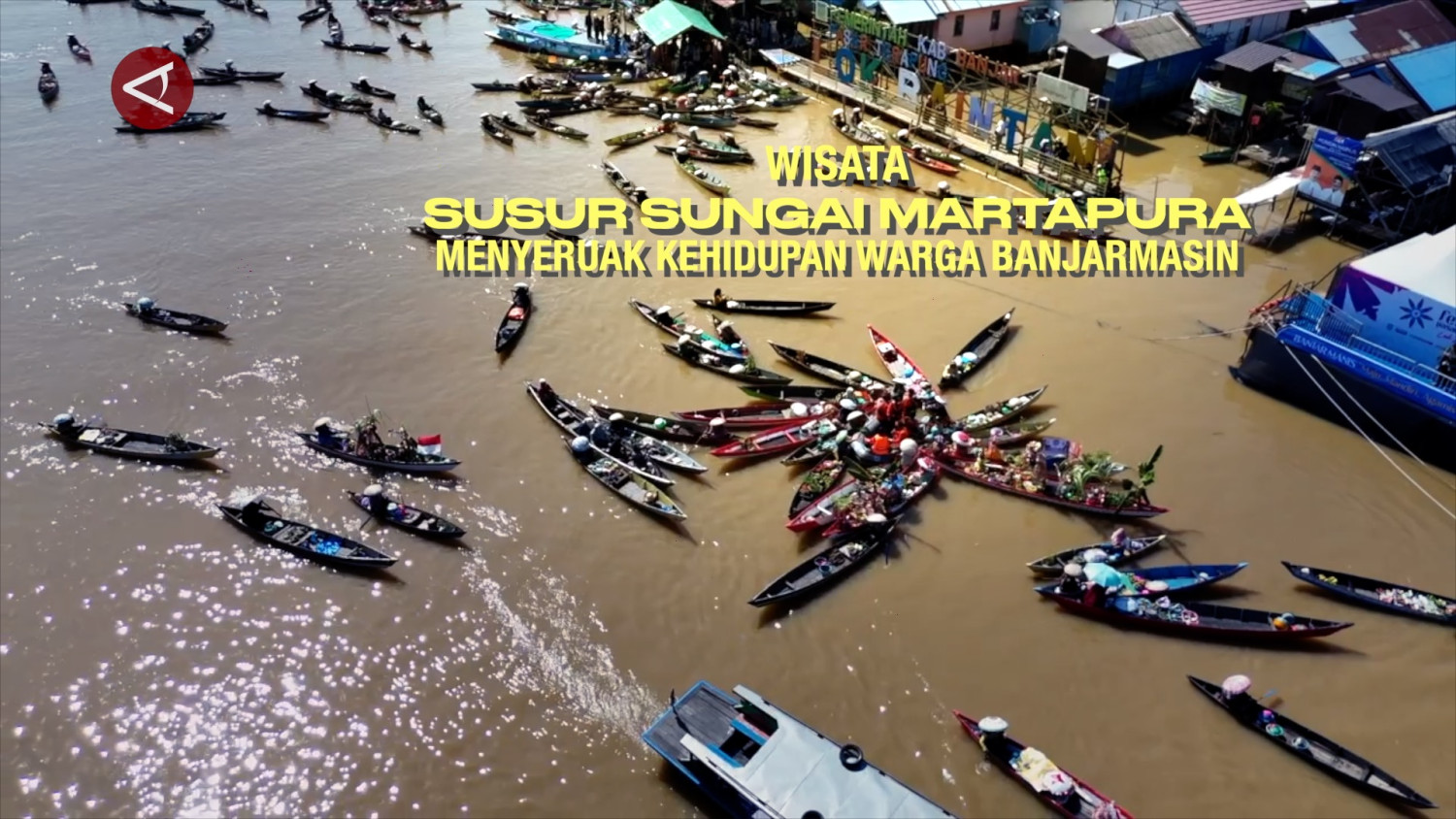 ANTARA - Wisata susur Sungai Martapura di Banjarmasin, Kalimantan Selatan, menawarkan pengalaman unik. Menyusuri perairan yang penuh sejarah dan keindahan alam, tidak hanya memanjakan mata, namun juga membawa wisatawan merasakan kehidupan masyarakat sehari-hari..(Bayu Pratama Syahputra/Rayyan/Rinto A Navis)
