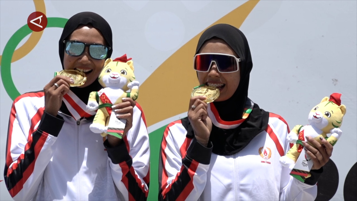 ANTARA - Tim bola voli pantai putri Jawa Tengah Devi Novitasari dan Dela Novitasari meraih medali emas Pekan Olahraga Nasional (PON) ke-21 Aceh-Sumut di Pantai Situngkir, Samosir, Sumatera Utara, Rabu (18/9). Tim Jawa Tengah tersebut mengalahkan Jawa Barat dengan skor akhir 2-0. (Bayu Pratama Syahputra/Fahrul Marwansyah/Gracia Simanjuntak)