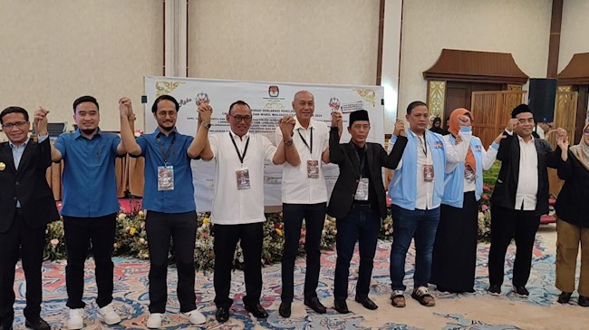 ANTARA - Komisi Pemilihan Umum (KPU) Kota Cilegon menggelar deklarasi kampanye damai yang diikuti tiga pasang Calon Wali Kota dan Calon Wakil Wali Kota di Pilkada Kota Cilegon 2024, Selasa (24/9). Ketua KPU Kota Cilegon Patchurrohman berpesan kepada tiga pasangan calon agar menghindari penyebaran berita hoaks, menghindari politik SARA, dan menghargai perbedaan pilihan untuk mencegah terjadinya potensi konflik dan perpecahan di tengah masyarakat. (Susmiatun Hayati/Rizky Bagus Dhermawan/Farah Khadija)