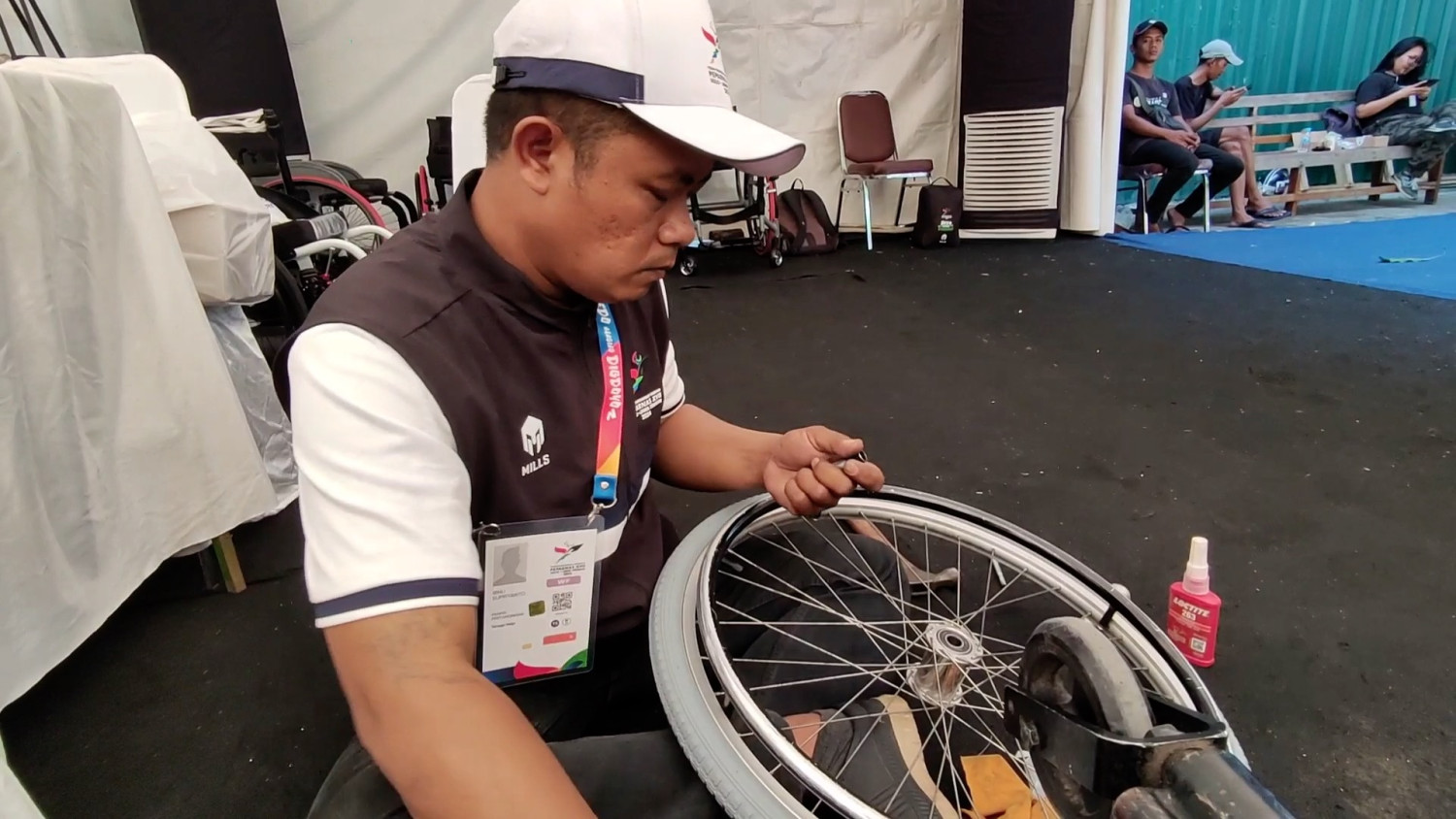 ANTARA - Panitia Besar (PB) Pekan Paralimpiade Nasional (Peparnas) XVII Solo menyediakan fasilitas bengkel kursi roda bagi para atlet Peparnas yang akan memperbaiki kursi rodanya secara gratis. Keberadaan bengkel kursi roda di area lokasi pertandingan sangat membantu para atlet untuk mendukung performa mereka saat bertanding maupun beraktivitas sehari-hari selama gelaran Peparnas XVII.(Fx. Suryo Wicaksono/Satrio Giri Marwanto/Ludmila Yusufin Diah Nastiti)