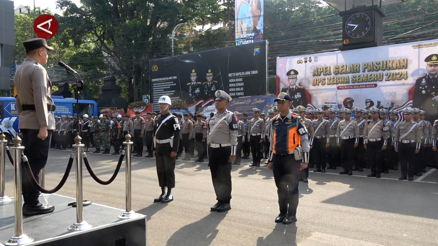ANTARA - Dalam Operasi Zebra Semeru 2024, yang berlangsung mulai tanggal 14-27 Oktober, Polresta Malang Kota mengerahkan 250 personel dari berbagai unsur. Upaya menekan kecelakaan lalu lintas menjadi salah satu fokus petugas seiring adanya pemilu kepala daerah, khususnya yang berkaitan dengan pengerahan massa kampanye. (Achmad Syaiful Afandi/Sandy Arizona/Farah Khadija)