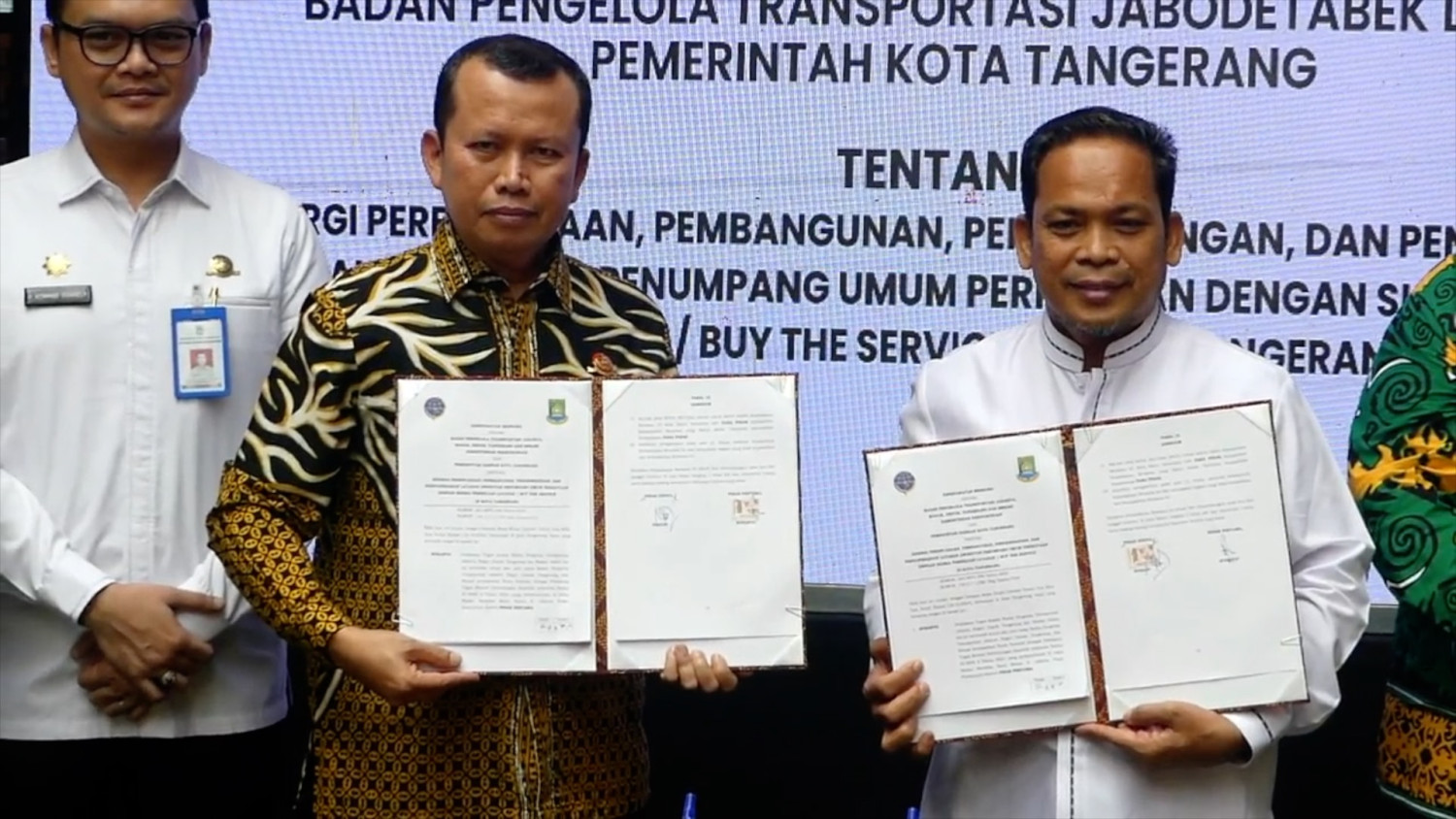 ANTARA - Pemerintah Kota Tangerang, Banten bersama dengan Badan Pengelola Transportasi Jabodetabek (BPTJ) melakukan kerja sama penambahan koridor baru Bus Raya Terpadu (BRT. Kerjasama itu ditandai melalui penandatanganan nota kesepahaman di ruang Pendopo Patio, Pusat Pemerintahan Kota Tangerang, Jumat (18/10).