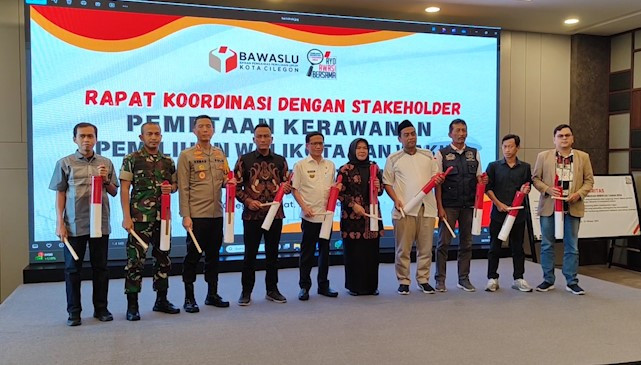 ANTARA - Badan Pengawas Pemilu (Bawaslu) Kota Cilegon, Jumat (18/10), menggelar rapat koordinasi untuk membahas pemetaan kerawanan pada Pilkada Serentak 2024. Dari hasil pemetaan kerawanan tersebut, Kejaksaan Negeri Kota Cilegon pun melakukan sejumlah mitigasi untuk meminimalkan terjadinya hal-hal yang tidak diinginkan. Upaya mitigasi itu diperkuat dengan menerjunkan 17 jaksa agar dapat secara langsung melakukan sosialisasi dan pengawasan. (Susmiatun Hayati/Rizky Bagus Dhermawan/Rinto A Navis)