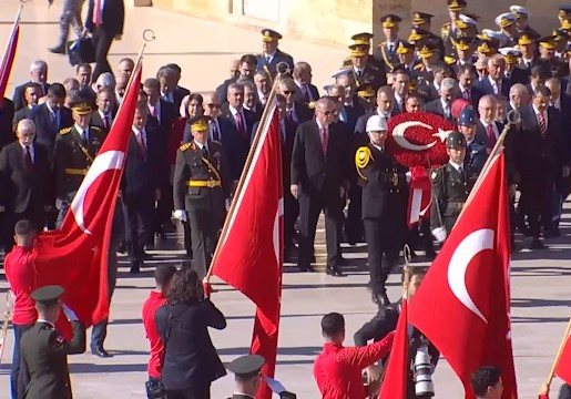 ANTARA - Turki merayakan ulang tahun ke-101 pendirian Republik Turki pada Selasa (29/10) dengan serangkaian acara dan peringatan yang beragam di seluruh negara. Bertempat di Ankara, Presiden Recep Tayyip Erdogan dan pejabat pemerintah meletakkan karangan bunga di Anıtkabir, tempat peristirahatan terakhir Mustafa Kemal Atatürk, pendiri republik. (XINHUA/ Rijalul Vikry/Rizky Bagus Dhermawan/Ludmila Yusufin Diah Nastiti)