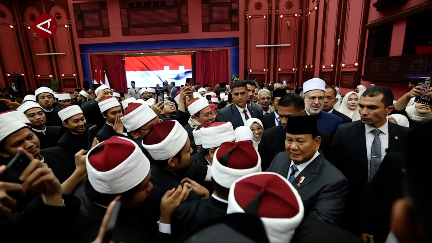 ANTARA - Salah satu agenda Presiden Prabowo Subianto di Mesir pada Rabu (18/12) ialah menjumpai para mahasiswa dan mahasiswi asal Indonesia yang tengah menimba ilmu di Universitas Al-Azhar, Kairo. Sejumlah pesan pun disampaikan oleh Presiden Prabowo di hadapan para pelajar asal Tanah Air.
