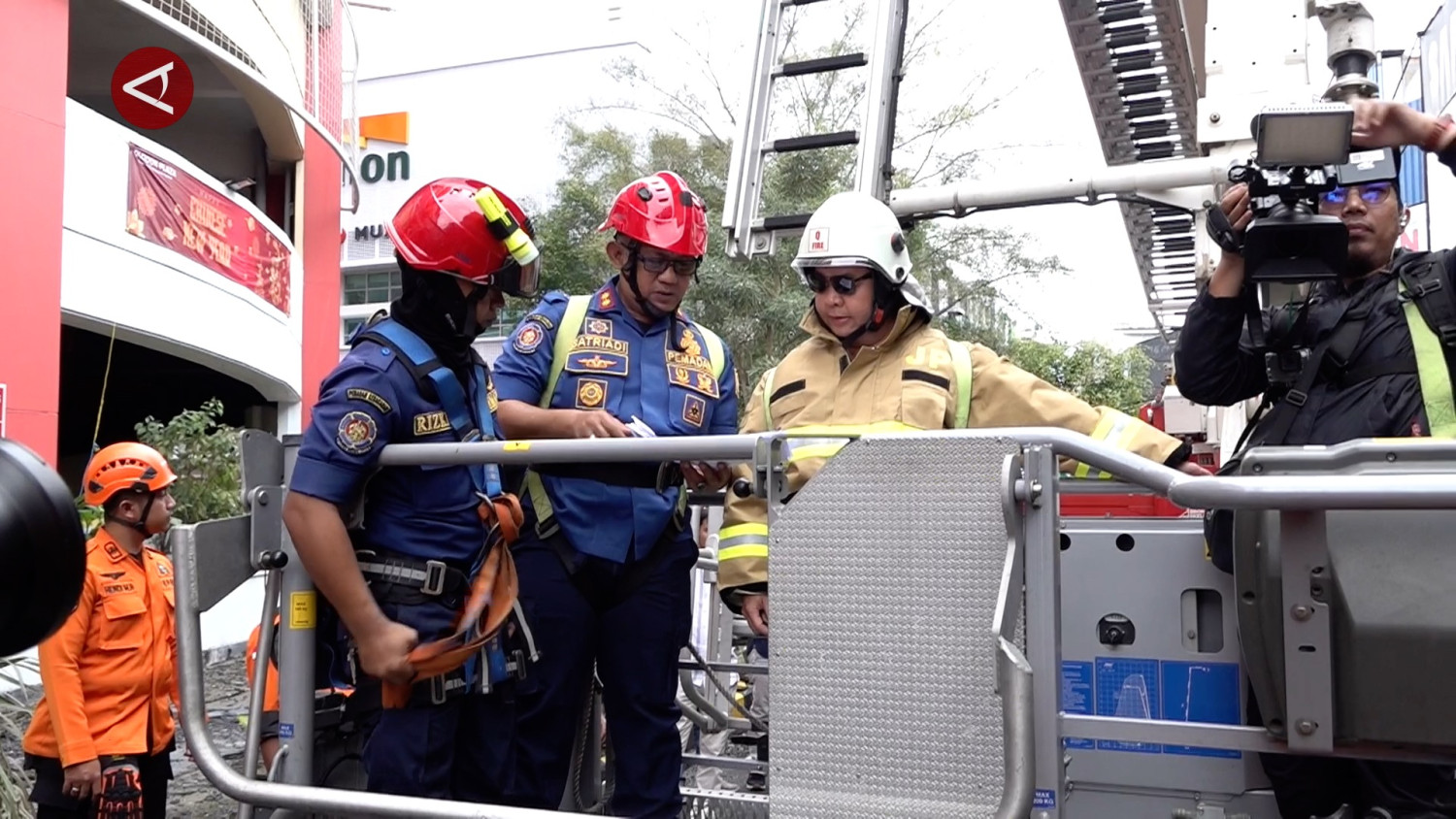 ANTARA - Pj Gubernur Jakarta Teguh Setyabudi melakukan peninjauan langsung ke lokasi kebakaran Glodok Plaza, Taman Sari, Jakarta Barat, Sabtu (18/1). Menggunakan unit Bronto SkyLift, ia melihat langsung puing-puing lokasi kejadian di mana api melahap lantai 7,8, dan 9 gedung tersebut. (Aria Cindyara/Satrio Giri Marwanto/Nanien Yuniar)