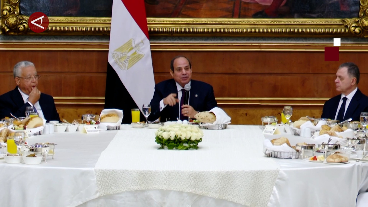 ANTARA - Presiden Mesir Abdel-Fattah al-Sisi pada Rabu (22/1) mengatakan pihaknya berkomitmen untuk mengimplementasikan penuh perjanjian gencatan senjata Gaza yang baru-baru ini dicapai antara Israel dan Hamas. Ia juga menolak "setiap upaya" untuk mengusir rakyat Palestina dari tanah mereka. (XINHUA/Ludmila Yusufin Diah Nastiti/Fahrul Marwansyah/Roy Rosa Bachtiar)