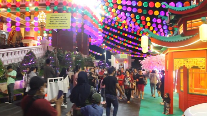 ANTARA - Vihara Sejahtera Maitreya, Buddhist Centre Kalimantan Timur merayakan Cap Go Meh pada rangkaian tahun baru Imlek 2576 Kongzili dengan ragam pertunjukan seni dan kebudayaan. Vihara terbesar di Kaltim yang berlokasi di Kota Samarinda itu juga menghadirkan kuliner vegetarian yang menjadi daya tarik pengunjung. (Hanifan Ma'ruf/Rizky Bagus Dhermawan/Roy Rosa Bachtiar)