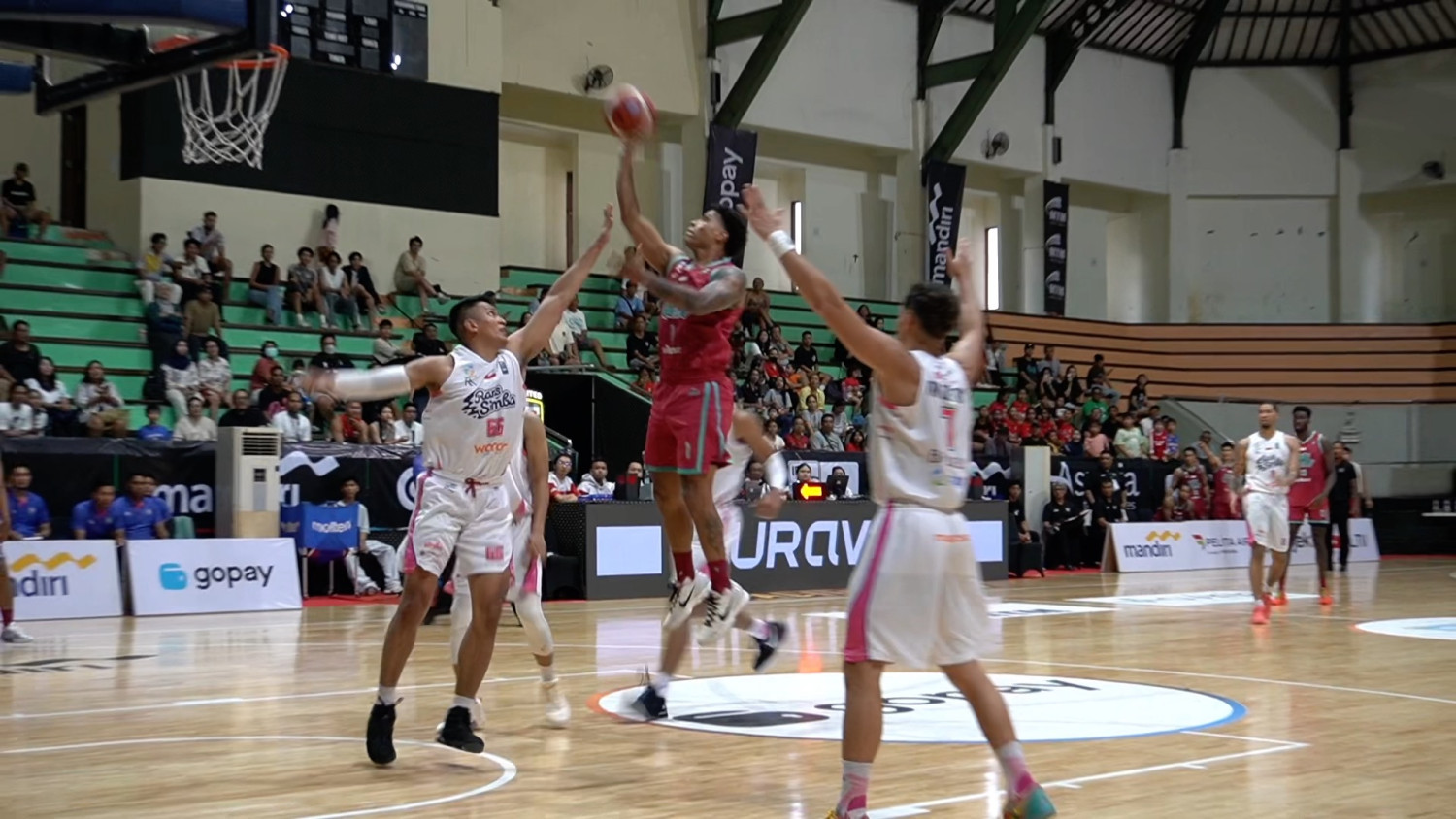 ANTARA - Rans Simba Bogor mengokohkan posisinya di puncak klasemen sementara Liga Basket Indonesia (IBL) setelah mengalahkan Bali United Basketball dalam pertandingan sengit di GOR Purna Krida, Kuta Utara, Kabupaten Badung Bali, Sabtu sore (12/4). Rans Simba Bogor berhasil menaklukkan tuan rumah Bali United Basketball dengan skor 81-77. (Rita Laura/Fahrul Marwansyah/Ardi Irawan)