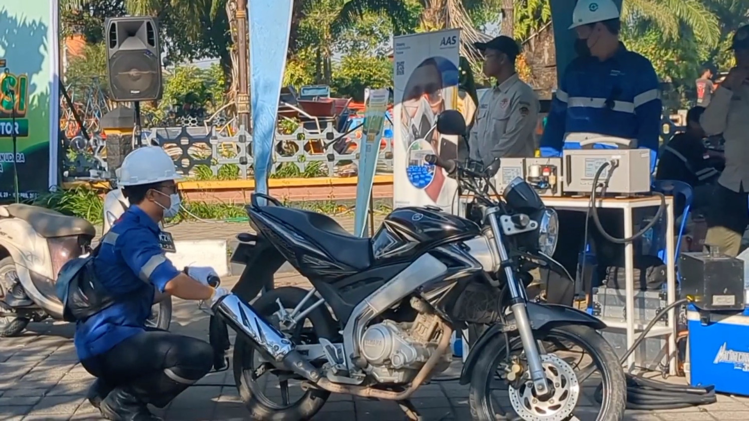 ANTARA - Demi meningkatkan kesadaran akan bahaya polusi udara, Pemerintah Kabupaten Madiun menggelar uji emisi kendaraan bermotor gratis, selama dua hari di alun-alun kabupaten setempat. Bagi pemilik kendaraan bermotor yang tidak lulus emisi, diminta untuk segera melakukan perawatan mesin agar tingkat gas buang tidak melebihi ambang batas. (Rindhu Dwi Kartiko/Yovita Amalia/Roy Rosa Bachtiar)