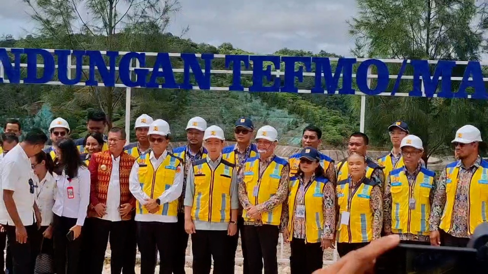 ANTARA - Wakil Presiden (Wapres) Gibran Rakabuming Raka meninjau progres pembangunan Bendungan Tefmo/Manikin di Desa Bokong, Taebenu, Kabupaten Kupang, Nusa Tenggara Timur, Rabu (7/5). Kepala Balai Wilayah Sungai Nusa Tenggara II Parlinggoman Simanungkalit menyebut telah meminta Wapres Gibran untuk mempercepat pembangunan bendungan agar pemanfaatannya bisa segera dirasakan oleh masyarakat setempat. (Kornelis Kaha/Soni Namura/Gracia Simanjuntak)