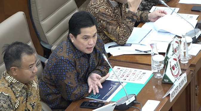 ANTARA - Menteri Badan Usaha Milik Negara (BUMN) Erick Thohir dalam rapat kerja bersama Komisi VI DPR RI, Selasa (20/5) mengatakan perusahaan-perusahaan BUMN masih dalam kondisi baik di tengah perang dagang global yang terjadi saat ini. Perusahaan-perusahaan BUMN akan tetap solid meskipun nilai tukar rupiah terhadap dolar AS mengalami fluktuasi menyentuh angka Rp20.000. (Anggah/Irfan Hardiansyah/Rizky Bagus Dhermawan/Rijalul Vikry)