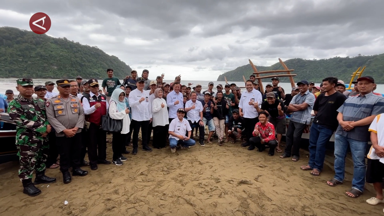 ANTARA - Menteri Kelautan dan Perikanan Sakti Wahyu Trenggono meninjau langsung kesiapan Desa Pujihardo yang akan berubah menjadi Kampung Nelayan Merah Putih. Desa yang terletak di kawasan Pantai Sipelot, Kecamatan Tirtoyudo, Kabupaten Malang, Jawa Timur ini menjadi bagian dari agenda program nasional untuk meningkatkan kesejahteraan nelayan melalui penyediaan sarana dan prasarana produksi perikanan tangkap. (Achmad Saif Hajarani/Sandy Arizona/Rinto A Navis)