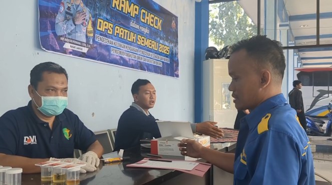ANTARA - Petugas gabungan melakukan Operasi Patuh Semeru di terminal Caruban Kabupaten Madiun, Jawa Timur, Rabu (16/7). Dalam operasi tersebut, puluhan sopir kendaraan umum yang melintas juga diperiksa kesehatannya dengan menjalani tes urine.(Rindhu Dwi Kartiko/Rizky Bagus Dhermawan/Ludmila Yusufin Diah Nastiti)
