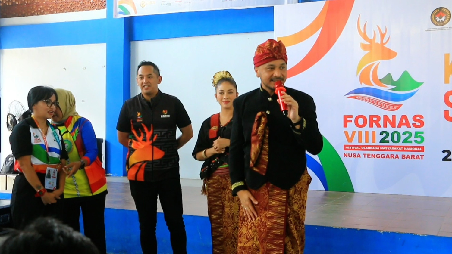 ANTARA - Wakil Menteri Kebudayaan, Giring Ganesha, tampil mengenakan pakaian adat Lombok saat menyemangati para atlet di Festival Olahraga Masyarakat Nasional (FORNAS) VIII yang digelar di Mataram, Nusa Tenggara Barat. Kegiatan ini menunjukkan dukungan kuat pemerintah dalam menggabungkan nilai budaya dan semangat olahraga. Wamen Giring berharap para peserta dapat tampil maksimal dengan penuh rasa bangga dan kebahagiaan.