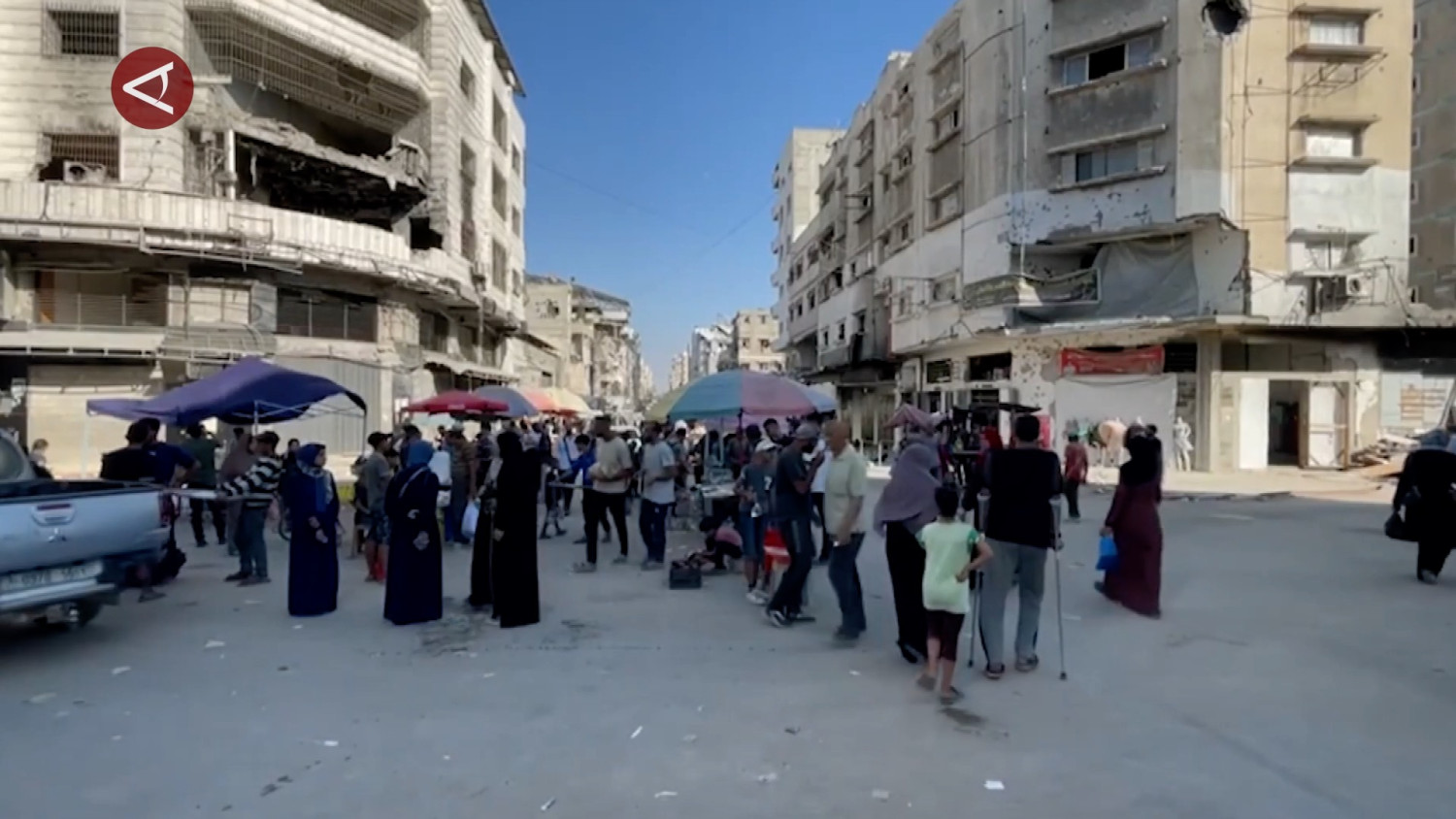 ANTARA - Hampir seluruh sistem perbankan di Gaza kolaps sehingga warga tak bisa mengakses uang mereka tanpa membayar biaya tinggi kepada penukar uang ilegal. Krisis ini diperparah blokade yang melarang masuknya uang tunai, membuat banyak keluarga kesulitan membeli kebutuhan pokok. (XINHUA/I Gusti Agung Ayu N/Fahrul Marwansyah/Gracia Simanjuntak)