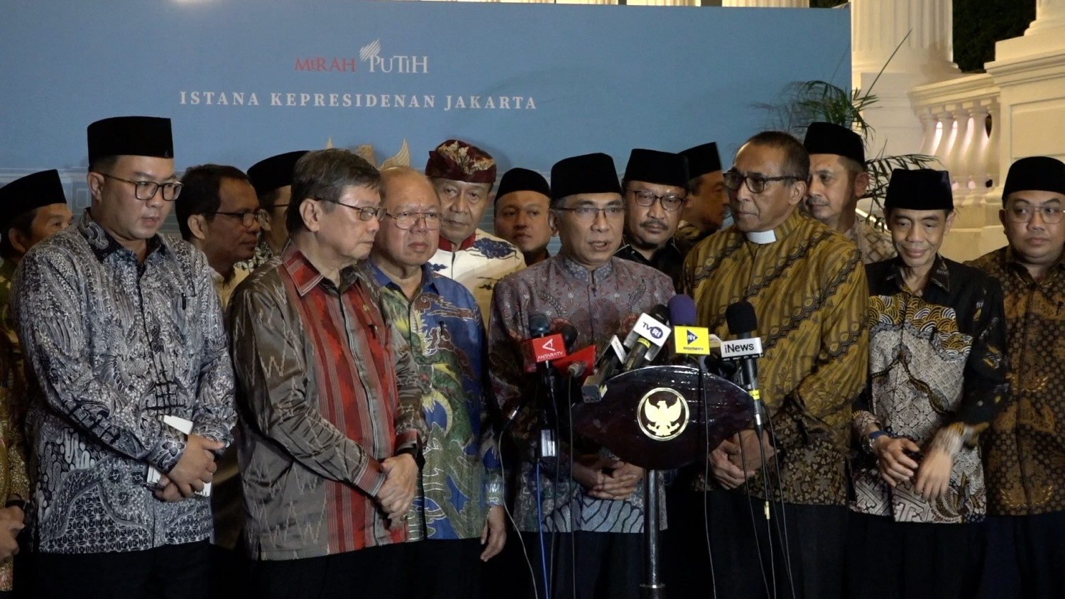ANTARA - Presiden Prabowo Subianto menerima kunjungan tokoh lintas agama di Istana Kepresidenan Jakarta, Senin (1/9). Dalam kesempatan tersebut, ia berbincang terkait kondisi bangsa dan para tokoh agama menyampaikan komitmen untuk membina para umat demi kedamaian di Tanah Air. (Aria Cindyara/Pradanna Putra Tampi/Chairul Fajri/Roy Rosa Bachtiar)