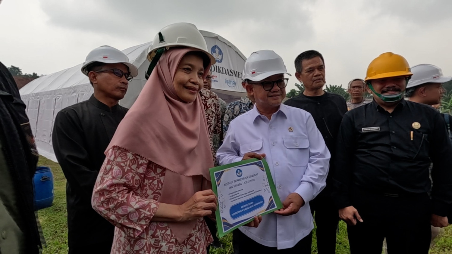ANTARA - Menteri Pendidikan Dasar dan Menengah (Mendikdasmen) Abdul Mu'ti memastikan perbaikan atap SMKN 1 Cileungsi, Kabupaten Bogor, Jawa Barat, yang roboh pada Rabu (10/9) akan selesai pada Desember 2025. Dalam kunjungannya ke lokasi pada Kamis (11/9), Menteri Mu'ti mengimbau sekolah-sekolah untuk melakukan perawatan dan pemeliharaan gedung secara berkala guna menjamin keselamatan para siswa. (Fadzar Ilham Pangestu/Andi Bagasela/Rijalul Vikry)