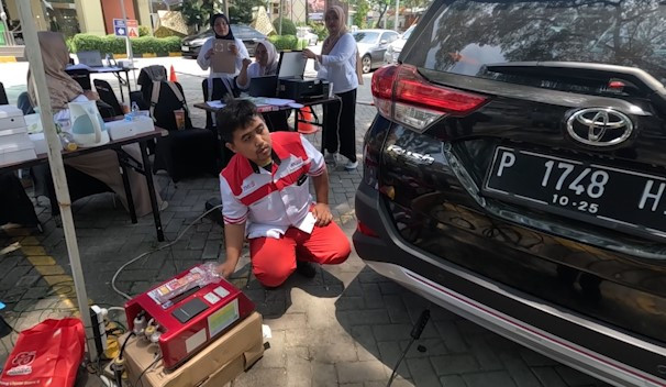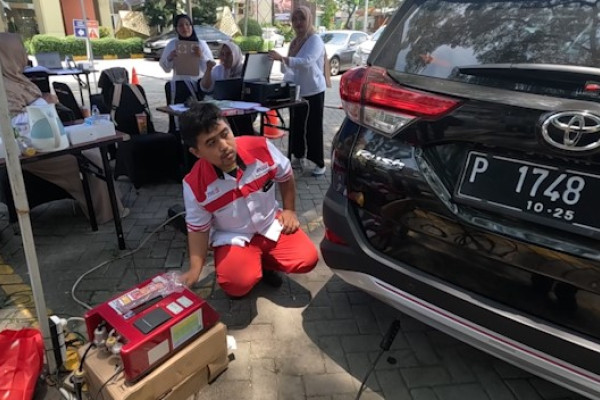 ANTARA - Dinas Lingkungan Hidup Kota Bogor menggelar uji emisi kendaraan roda dua dan empat di salah satu pusat perbelanjaan di Kota Bogor, Jawa Barat, Kamis (16/10), sebagai upaya menekan pencemaran udara dari sektor transportasi. Kegiatan itu bertujuan untuk meningkatkan kesadaran pemilik kendaraan akan pentingnya perawatan mesin dan dampaknya terhadap kualitas udara kota. (Fadzar Ilham Pangestu/Rizky Bagus Dhermawan/Gracia Simanjuntak)