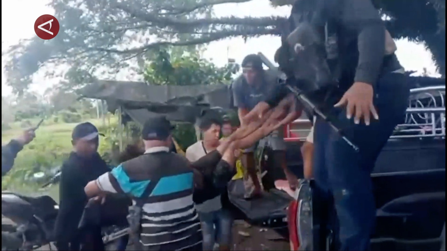 ANTARA - Kelompok Kriminal Bersenjata (KKB) kembali melakukan aksinya penyerangan di Jalan Trans Nabire- Enarotali Paniai, Kali Semen, Distrik Nabire Barat, Kabupaten Nabire, pada Jumat (17/10). Dalam insiden ini satu warga tewas dan empat lainnya mengalami luka. Polisi pun melakukan pengejaran terhadap para pelaku. (Laksa Mahendra/Fahrul Marwansyah/Roy Rosa Bachtiar)