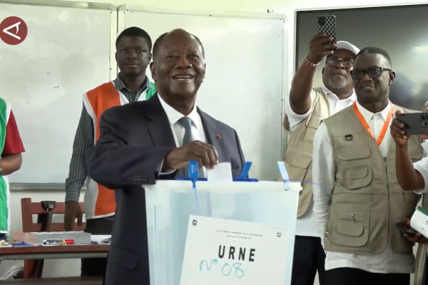 ANTARA - Pemungutan suara untuk pemilihan presiden Pantai Gading berlangsung lancar pada Sabtu (25/10), usai masa kampanye yang diwarnai oleh protes dan kekerasan. Menteri Dalam Negeri dan Keamanan Vagondo Diomande, setelah kunjungan lapangan di Abidjan, mengatakan semua tempat pemungutan suara (TPS) dan pasukan keamanan menjalankan tugasnya. (XINHUA/Gracia Simanjuntak/Arif Prada/Nanien Yuniar)
