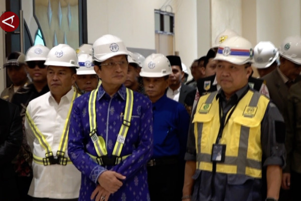 ANTARA - Menteri Agama Republik Indonesia, Nasaruddin Umar, meninjau progres pembangunan Masjid Raya Palu, Sulawesi Tengah, Minggu (2/11). Dalam kunjungan tersebut, Menteri Agama Nasaruddin yang didampingi Gubernur Sulawesi Tengah, Anwar Hafid, memastikan kesiapan akhir proyek revitalisasi masjid pascabencana yang dijadwalkan rampung dan diserahterimakan pada pertengahan November mendatang. (M. Izfaldi/Andi Bagasela/Yogi Rachman)