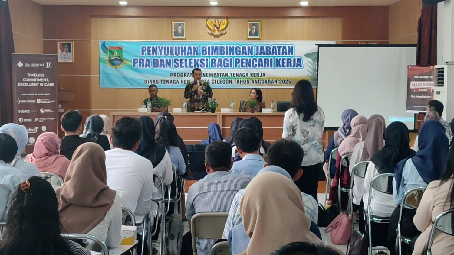 ANTARA - Dinas Tenaga Kerja Kota Cilegon melaksanakan penyuluhan bimbingan jabatan dan pra seleksi bagi puluhan pencari kerja di Aula Kantor Disnaker, Kota Cilegon, Kamis (13/11). Pembekalan ini diberikan kepada calon tenaga kerja setempat agar memiliki keterampilan sesuai yang dibutuhkan pengetahuan, sehingga penyerapan tenaga kerja lokal dapat maksimal.(Susmiatun Hayati/Denno Ramdha Asmara/Ludmila Yusufin Diah Nastiti)
