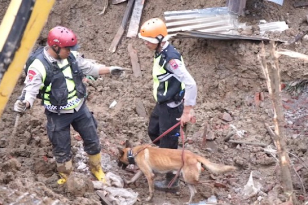 ANTARA - Operasi pencarian korban longsor di Dusun Situkung, Banjarnegara, Jumat (21/11), memasuki hari keenam dengan perkembangan signifikan. Enam titik baru yang diduga lokasi tertimbunnya korban berhasil ditemukan setelah anjing pelacak K9 mengendus jejak keberadaan manusia di bawah material longsoran. (Yusup Fatoni/Rizky Bagus Dhermawan/Gracia Simanjuntak)