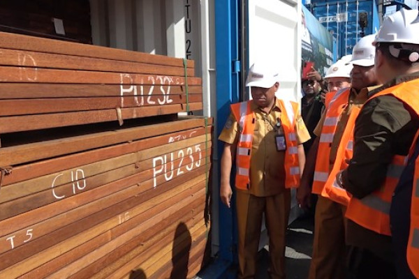 ANTARA - Pemerintah Provinsi Papua melepas ekspor 10 kontainer kayu olahan dari Pelabuhan Jayapura menuju Shanghai,China, Selasa (25/11). Gubernur Papua Mathius D. Fakhiri mengatakan ekspor ini menunjukkan bahwa industri pengolahan kayu di Papua semakin berkembang dan mampu memenuhi permintaan pasar internasional. (Laksa Mahendra/Rizky Bagus Dhermawan/Rijalul Vikry)