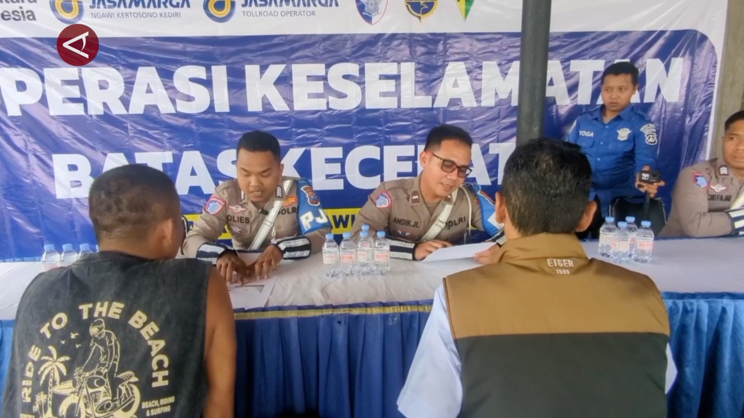 ANTARA - Razia batas kecepatan dilakukan petugas gabungan Polda Jatim, TNI, dan Jasa Marga, Rabu (26/11). Kendaraan yang melanggar diarahkan keluar jalur dan diberi pembinaan. Hal ini sebagai upaya ini bagian dari peningkatan keselamatan perjalanan masyarakat.
