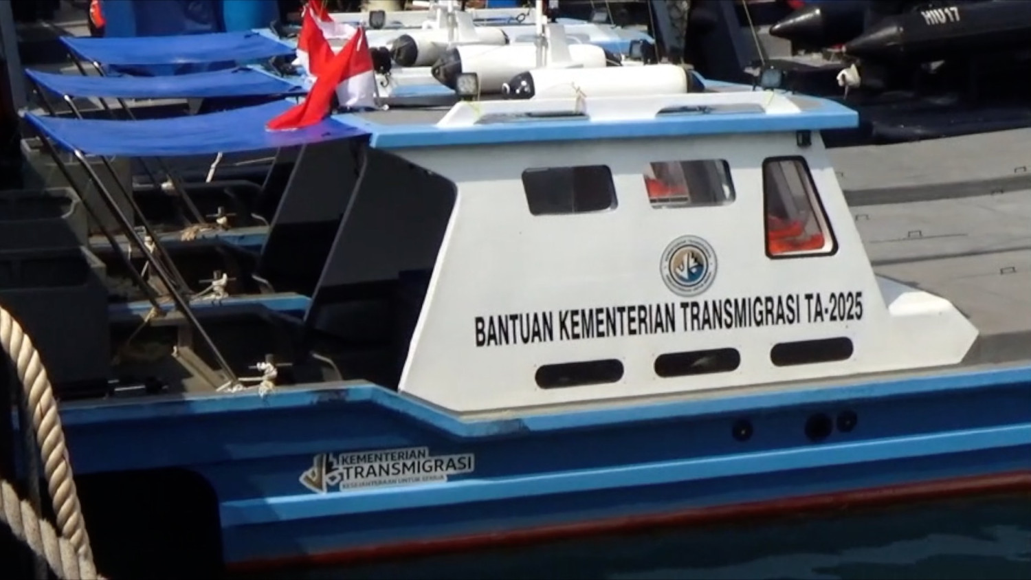 ANTARA - Kementerian Transmigrasi merealisasikan 16 bantuan kapal nelayan bagi masyarakat Rempang Eco-City, sebagai upaya peningkatan pendapatan dan kesejahteraan warga setempat. Wakil Menteri Transmigrasi Viva Yoga Mauladi di Batam, Senin (12/1) menyampaikan, dalam satu kapal berukuran 5 GT dilengkapi dengan jaring sebagai alat tangkap, serta toilet kecil di bagian belakang kapal. (Angiela Chantiequ/Andi Bagasela/Roy Rosa Bachtiar)