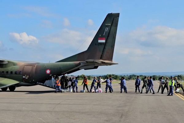 ANTARA - Bantuan pangan untuk korban banjir di Aceh dari Danantara Indonesia tiba di Bandara Malikussaleh, Aceh Utara, Senin (1/12). Bantuan tersebut akan didistribusikan secara merata, utamanya ke wilayah yang masih terisolasi seperti Kabupaten Aceh Tengah dan Bener Meriah. (Try Vanny S/Soni Namura/Gracia Simanjuntak)