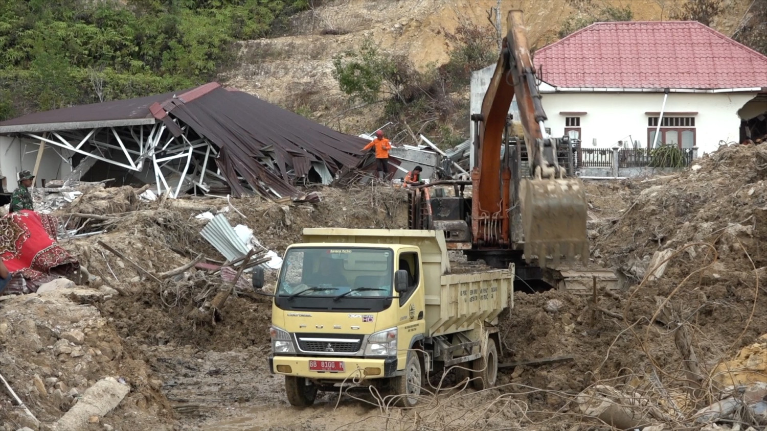 ANTARA - Kabupaten Tapanuli Tengah membutuhkan puluhan unit alat berat untuk dapat membuka akses jalan utama yang masih dipenuhi oleh material kayu dan endapan lumpur timbunan tanah. Terdata, hingga saat ini masih terdapat 19 desa terisolir yang kondisinya belum dapat diakses melalui darat. (Pradanna Putra Tampi/Fahrul Marwansyah/Roy Rosa Bachtiar)