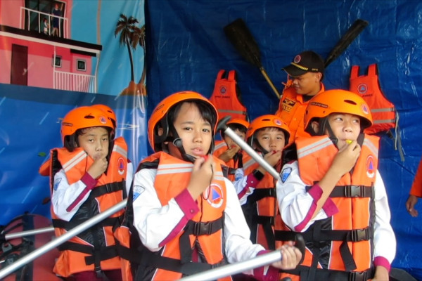 ANTARA - Badan Penanggulangan Bencana Daerah (BPBD) Kabupaten Jember, Jawa Timur menggandeng lembaga pendidikan dalam upaya mengurangi dampak atau risiko bencana sebelum terjadi dengan tujuan meminimalisasi korban jiwa, kerugian harta benda, dan kerusakan lingkungan. Upaya tersebut dilakukan melalui edukasi kepada anak-anak Sekolah Dasar di kantor BPBD setempat, Senin (8/12) dengan memberikan pelatihan tentang cara menyelamatkan diri hingga penyelamatan korban bencana alam. (Hamka Agung Balya/Yovita Amalia/Rijalul Vikry)
